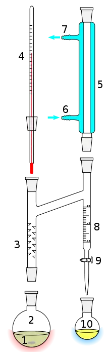 Dean-Stark装置(又称作Dean-Stark接收器、Dean-Stark蒸馏器或分水器)是化学合成中常用的一种玻璃仪器,它通常与回流冷凝器和收集装置连用以保证在回流温度下所进行的反应生成的水(偶尔也有其他液体)可以被连续排出且被测定。这一装置最先是于1920年由美国矿业局从事石油化工研究的E.W.Dean和D.D.Stark为了测定石油中的水含量而设计,从此得名。