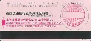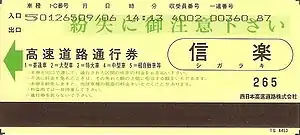 通行券(つうこうけん)是日本高速公路等收费道路的通行必要凭证 。
