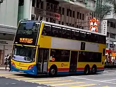 九巴現時使用14輛富豪B9TL 12米(AVBWU)及2輛富豪B8L 12米(V6B)低地台雙層空調巴士,均屬沙田車廠。