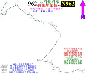 過海隧道巴士N962線是962線的深宵路線,來往屯門(龍門居)及銅鑼灣(摩頓臺),走線與962完全相同,但往港島方向加停金鐘站,由城巴獨自經營。