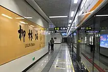 除贾河站外,2号线各站的站台层均设有书法站名墙,采用黑色字体配黄色背景。各站站名的书法由原中国书法家协会主席张海题写[7]。