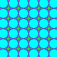 完全截半截角正方形鑲嵌由正八邊形、正方形和等腰三角形組成,對稱群為p4m, [4,4], (*442)。