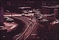 - 岩溪。原來的橋由四個 100 英尺的博爾曼桁架組成,而岩溪河道在附近有個大彎,河道幾乎與鐵路橋平行。1893 年,在桥梁上游的岩溪河道改道,之後岩溪河道與橋幾乎成直角而通過。 [9]大約在同一時間(1893-1896 年),博爾曼式桁架橋改建為石拱橋。 1928 年,該路段其餘部分雙軌化完工,並興建了由建築師Ephraim Francis Baldwin所設計的幾個車站,仍存於羅克維爾(1981年搬遷)、肯辛顿、盖瑟斯堡、迪克森和巨岩點。 [6]:6–10