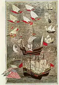 奥斯曼舰队对亚齐的访问和奥斯曼舰队向亚齐的进军——1566-1567 年为建立奥斯曼帝国和亚齐苏丹国关系而派遣的奥斯曼海军远征队。1560 年代上半叶,亚齐苏丹阿拉丁·里亚特·沙阿·卡哈尔向伊斯坦布尔派遣了外交使团。他承认苏丹苏莱曼大帝是 伊斯兰教的哈里发,并请求他帮助对抗葡萄牙人。奥斯曼人同意帮助亚齐对抗葡萄牙人。海军上将 Kurtoglu Hizir Rais 领导了海军战役。奥斯曼海军使团为与葡萄牙人作战的亚齐人带来了火器。为了换取土耳其人的军事援助,亚齐人用珍珠、钻石和红宝石回禮。