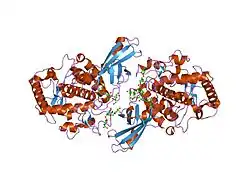 | 别名 | ;tyrosinasemonophenol oxygenasemonophenol oxidasemonophenolasemonophenoldihydroxy-L-phenylalanine oxygen oxidoreductasemonophenol monooxidasepolyaromatic oxidasemonophenol,L-dopa:oxygen oxidoreductaseL-tyrosine monooxygenasemonophenol dihydroxyphenylalanine:oxygen oxidoreductaseN-acetyl-6-hydroxytryptophan oxidasetyrosine-dopa oxidasepolyphenolase | ||||||