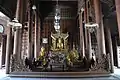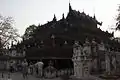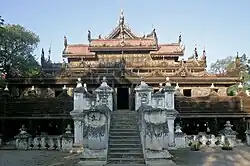 金色宫殿僧院为纯柚木打造,三层重檐,屋檐雕刻非常繁复华丽。底部以上百根柚木柱支撑,外围建木回廊。内壁和天花板涂金漆,金色宫殿的称号也是由此而来[4]。