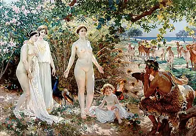 宙斯把金苹果交给众神信使赫耳墨斯,让他转交到帕里斯手中,并告诉他,女神们会毫无争议地接受他的评判。为了得到苹果,三位女神脱掉衣服,向帕里斯展示自己的美丽。她们还分别试图贿赂帕里斯,向他许诺自己能够给予他的礼物:赫拉提出,可以让他成为整个欧洲和小亚细亚的王;雅典娜则为他提供战斗的智慧和技巧;阿佛洛狄忒则说,要使世界上最美丽的女人——斯巴达的海伦爱上他。帕里斯选择了海伦,将金苹果给了阿佛洛狄忒。但彼时海伦已经嫁给了墨涅拉俄斯国王,因此,帕里斯的决定继而引发了特洛伊战争,并最终摧毁了他自己和自己的城邦特洛伊。