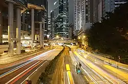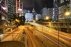 在金鐘道行人天橋上西望的中環商廈