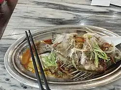 珠海一家海鲜餐厅的果皮蒸金钱鱼
