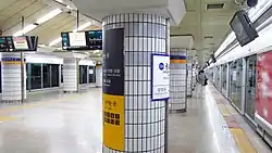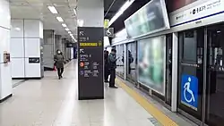 1號線站體為側式月台的地下車站,3號線及5號線站體則是島式月台的地下車站,三線候車月台皆設有月台幕門,並有出口共16處。