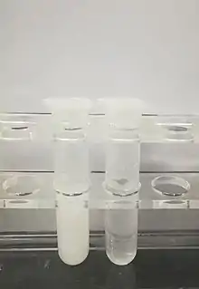 硝酸钇(Y(NO3)3)是易溶于水的无色晶体,溶解度随温度的升高而增大;而硫酸钇(Y2(SO4)3)与之相反,溶解度随温度的升高而降低。[22]