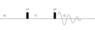 其中一例二維NMR實驗為同核種(homonuclear)COSY脈衝序列,包括了第一個脈衝(p1),接著是演化時間(t1),再接著是第二個脈衝(p2),最後是測量時間(t2)。電腦會將所有的頻譜組集成演化時間(t1)的函數。最後,透過傅立葉變換將時間相依的訊號轉為二維頻譜。