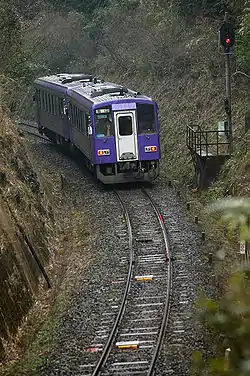 ![]() 非電化路段行走的Kiha 120型柴聯車 | |||||||||||||||||||||||||||||||||||||||||||||||||||||||||||||||||||||||||||||||||||||||||||||||||||||||||||||||||||||||||||||||||||||||||||||||||||||||||||||||||||||||||||||||||||||||||||||||||||||||||||||||||||||||||||||||||||||||||||||||||||||||||||||||||
