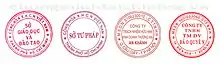 根据国家规定,现代越南篆体字方形印不再享有正式使用权,每个公司或企业都有自己的圆形印,上面必须包含组织名称和注册号码。据《2014年企业法》,为给越南企业创造更有利的条件,登记印章样本时,企业不再需要向警方登记。企业可以自行刻制印章样本,并将印章样本送到工商登记处。当企业改用新印章或改变了印章信息时,需要向政府登记新的公司印章样本。2021年,一枚官印一般需要350越南盾。[53]