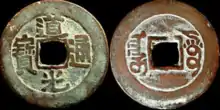 | 咸丰通宝“当十” | 背穿上下为汉字“當”和“十” | ||||