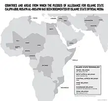 伊斯兰国官方媒体记录了效忠阿布·侯赛因的地方。[10]