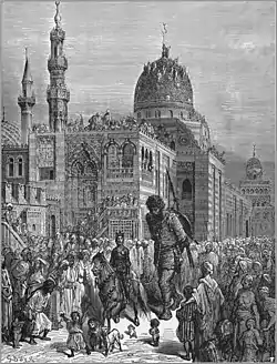 阿斯托尔福利用其号角擒住巨人卡利戈兰特(),并同其游行于各城镇,甚至役使他驮负重物。另外,其亦将一非常擅于伤躯再生(甚至其四肢被切断也能重新愈合)而无法被杀死的强盗奥里洛()击败[4]。暂将其黄金长枪与马匹寄存于布拉達曼特()后,其跨上骏鹰,开始寻找奥兰多遗失的理智[5]。