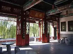 - 月亮门:从前院向西穿过一道月亮门,便是后院。后院有西厅、北厅各三间,其中位于后院西侧的西厅便是陶然亭。