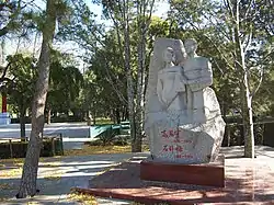 中央岛上有中国共产党早期活动家高君宇及其女友石评梅的墓碑。[1]