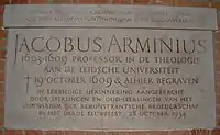 莱顿彼得教堂内的阿民念纪念石。阿民念葬于该教堂内