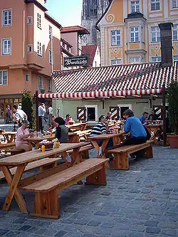在桥的南端,原来是服务于修建桥梁者的厨房Historische Wurstküche,现在是一个传统餐厅。