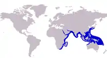 本種廣泛分布在印度洋及西太平洋熱帶及亞熱帶海域,從東非、南非、馬達加斯加北部到紅海和波斯灣,並沿著印度沿海向東延伸至ˋ西太平洋的中國、台灣、日本、泰國、印尼、澳大利亞北部至東加、薩摩亞和新喀里多尼亞。[3]