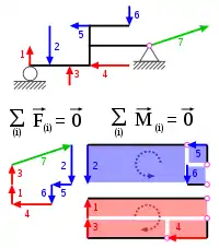 外净力又称为靜力平衡第一条件,外净力矩又称为靜力平衡第二条件,可以用来求解作用于系统的未知量。
