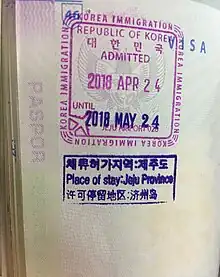 大韩民国(韩国、南韩)政府允许特定的国家和地区的公民,前来韩国境内旅游或从事商业活动时不需要申请签证(免簽)[1],僅需要出示護照方可入境。但某些国家和地区的公民仍然要出示韩国签证。其中北韓籍居民則例外,因為韓國不承認朝鲜護照,而不適用上述條款限制,一般來說與朝方的交流是由統一部來處理。