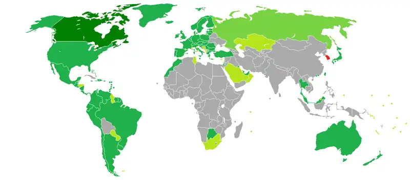 以下國家的外交、官員和公務護照持有人在進入韓國時可以豁免簽證:[2]