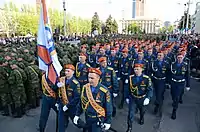 俄羅斯東正教軍(俄語:;簡稱ROA)是2014年5月建立的一個親俄武裝組織[19],建立初期約有100名成員,但隨著局勢升級,已經增加約5000人[20]。該組織曾經參與2014年6月的馬裡烏波爾戰役[21]。俄羅斯東正教軍的總部位於頓涅茨克市一棟被佔領的烏克蘭安全局大樓內[22]。烏克蘭國防部稱,俄羅斯東正教軍一直與另一個親俄武裝組織「東方營」發生衝突,並且指責該組織經常搶劫並逃避正面戰鬥。[23]