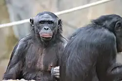 其他如贝兰和埃文斯做的研究[17] 表明人类与非人类的灵长类动物在自制力上也有一定相似之处。他们用类似在儿童身上使用的自我分心手段来让黑猩猩控制他们的冲动。类人猿也表现出制定计划的能力,甚至可以“将自己投射到未来”,也就是进行心理时间之旅。故而类人猿似乎也具备自我意识,因为“自我意识实现延迟满足(),因为具有自我意识的个体可以推测自己的未来”。[18]