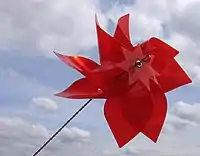 风车以秸秆作支架,纸条作圆形车轮,下面用泥和纸作鼓。风车有一轮、二轮、十几轮、几十轮之分。当风吹动轮子时,轮子带动小鼓发出响声。