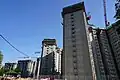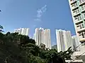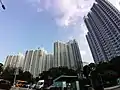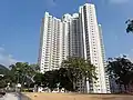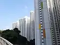 ![]() 駿洋邨與彩禾苑(圖內左與右白色建築)南面全貌(2020年6月) | |