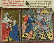 1101年9月上旬,埃及的轻装部队抵达了拉姆拉,与鲍德温爆发了第一次拉姆拉战争。[118]9月7日黎明时分,数量较少却有着良好装备的十字军率先发起了攻击。[119]在战争初期,五支十字军中的三支就几乎被歼灭,鲍德温说服剩下的士兵对埃及人发起了新一轮的突袭。[120]在短暂的抵抗后,埃及军队开始溃逃,十字军一直追击至远直到阿斯卡隆。[119][121]