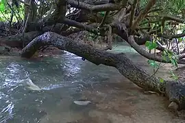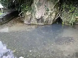 有推测认为,该咸水泉的成因是由於來自陸地的淡水流经石灰岩洞穴形成的地下河道,使海水和地下水(淡水)混合,然後湧向地表[2],惟此說仍未被確定。