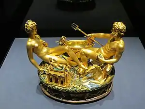 鹽罐(Saliera)是本韦努托·切利尼的唯一倖存的黃金作品。在切利尼於1540年至1543年在巴黎逗留期間,由弗朗索瓦一世委託製造。在1570年由法王查理九世與奧地利大公伊麗莎白結婚時,給蒂羅爾州的斐迪南二世。它藏于艺术史博物馆,2003年5月11日被盗,直到2006年1月21日才在茨韦特尔附近的森林挖出。[1]
