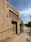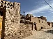 走廊一般会修的较深,走廊扶手、廊檐等有时会装饰有木工雕刻。夏季厨灶会被安排在庭院内,冬季则会使用室内的灶台。民居院落一般分为用于生活起居的前院和用于圈养牲畜和堆积肥料的后院。前院会搭建凉棚和镂空花墙。21世纪之前,前院会有土坯堆砌的土炕,21世纪之后多改为一张或两张彩色的宽大铁床,天热时用于休憩。大部分民居会在房顶修建晒制葡萄干的晒房。[书 1]:38-39麻扎村晒房由错位、叠加砌筑而成的砖块构成,形成长方形、十字形等不同形式的镂空墙体。[刊 7]