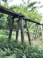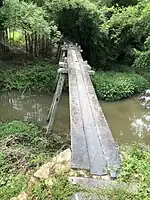 桥墩为“八”字形,由四条0.17×0.24米长条石柱构成,两跨石柱间用两根横置的方石条榫接,顶部由一块长1.74米厚0.14米的石板与桥面榫接。石桥风格简朴、节省材料,而且方便排洪。[4]