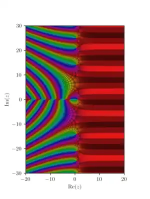 对于所有C\{0,1}中的s成立。这裡,Γ表示Γ函数。这个公式原来用来构造解析连续性。在s = 1,ζ函数有一个简单极点其留数为1。上述方程中有sin函數,的零點為偶數s = 2n,這些位置是可能的零點,但s為正偶數時,為不為零的規則函數,只有s為負偶數時,ζ函数才有零點,稱為平凡零點。