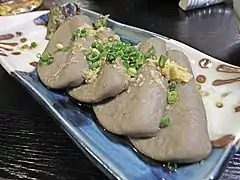 半片(はんぺん)是在日本关东、东海食用广泛的食品,但一般为白色。静冈的黑半片,颜色为灰色,并做成D字型的独特形状。在静冈,半片通常就是黑半片,有些县民在其他地区见到白色半片反而会惊讶。