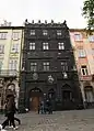 1596年,利沃夫贵族扬·洛伦科维奇(Jan Lorencowicz)购置了这所房子,在底楼开设了利沃夫最早的药房之一,又增建了一层。1884年进行修复,并增加了最上一层。建筑内部的门窗均用大理石装饰。.[2]