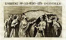 1742年的畫作,描述了聲名狼藉的教宗若望十二世的屍體被眾人抬舉的畫面