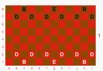 - 地上:國王(King)一枚、法師(Mage)一枚、聖武士(Paladin)一枚、僧侶(Cleric)一枚、英雄(Hero)兩枚、盜賊(Thief)兩枚、獨角獸(Unicorn)兩枚、猛瑪(Oliphant)兩枚、戰士(Warrior)十二枚