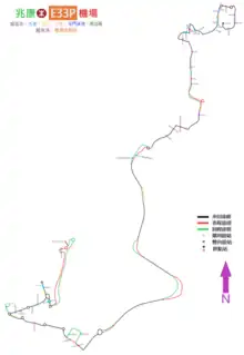 - 2016年9月19日:E33P往機場方向延長服務時間至13:00,星期一至六07:30至13:00及假日08:00至13:00時段,提供每半小時一班的服務。[4]