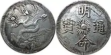 安南王室在1830年代手制了几种背面带有龙图的明命通宝银元。