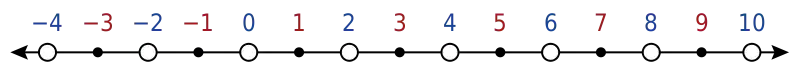 数字可以用数轴来可视化表现,其中有个常见的特征奇数和偶数相互交替。当负数也算入其中时,这个特征变得尤为明显。