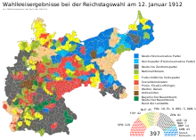 1912年的德國聯邦選舉於1月12日舉行。儘管社會民主黨(SPD)自1890年以來在每次選舉中獲得的選票最多,但從未贏得最多席位,儘管它曾在1907年的選舉中獲得了超過百萬票。然而在1912年的選舉中,社民黨保持其作為得票最多的政黨的地位,並成為帝國議會中最大的政黨,贏得了397個席位中的110個。