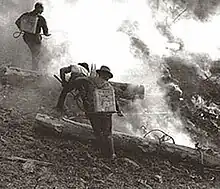 - 虽然在1930年代早期,森林巡逻站已经配备有可以双向通讯的无线电技术了,但直到1940年代末,便携式的对讲机才被用于森林消防。[8]1947年时,直升机首次被用于扑灭野火。[9]