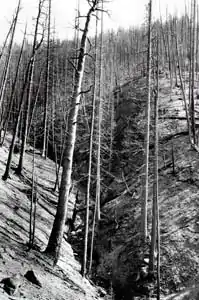 1937年8月18日,一道闪电击中了美国肖松尼国家森林,引发了一场后称“1937年布莱克沃特大火”(英語:)的火灾。火灾现场位处怀俄明州科迪市以西约35英里(56)处。此次大火中,山火因干燥锋面的缘故突然增强并改变方向,导致15名消防员先后遇难——火势迅速向茂密的森林中蔓延,致使部分消防员被困在火灾旋风中,9名消防员在大火中罹难,6名消防员事后因严重烧伤和呼吸道并发症死亡,另有38名消防员受伤。此次火灾事故是1910年大火至2013年亞奈爾山火之间的103年里,美国国家森林大火中消防员死亡人数最多的一次。