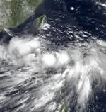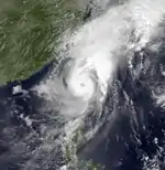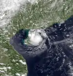 | 強度 | 95 km/h(60 mph)(十分鐘) 985 hPa(mbar) |